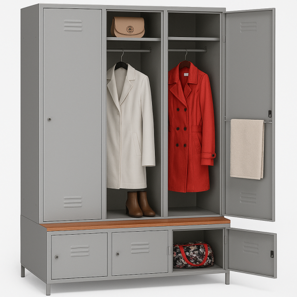 Soyunma dolabı Kirli Temiz Bölmeli Banklı Ayakkabılıklı modeli, fiyatı, özellikleri, görselleri, ölçüleri şöyledir: