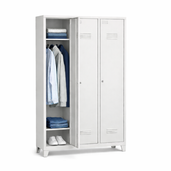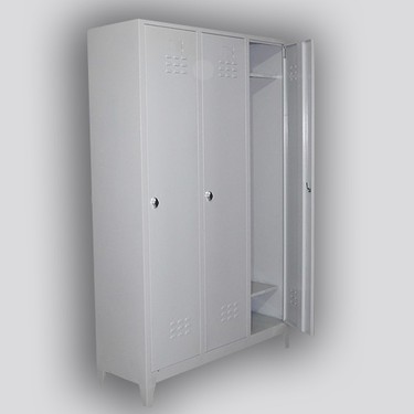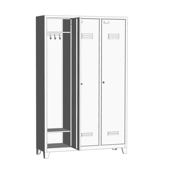 Standart Üçlü personel soyunma dolabı, İş yerinizde çalışan personelin günlük  iş ve sivil kıyafetlerini, kişisel eşyalarını, cüzdan çanta ve değerli eşyalarını güvenle muhafaza etmeleri için tasarlanmış metal dolaptır. Standart modeller geniş kullanım haznesi ile dayanıklı yapısı ve uzun ömürlü kullanım özelliği ile işletmelerin en çok tercih ettiği  modeldir
